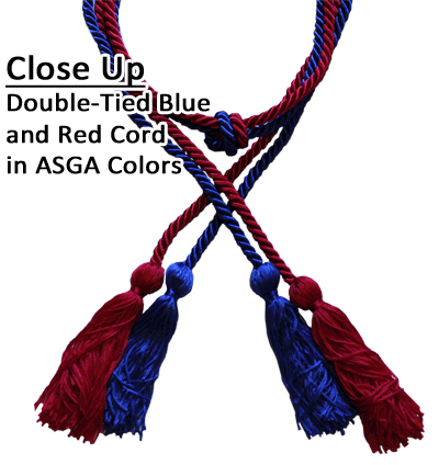 ASGA honor cords can be a royal blue and red double cord. Other ways to show achievement for student government leaders are Honor Stoles or Sashes, or Medallions. In addition to Royal Blue and Red Graduation Honor Cords, we also carry both royal blue graduation sashes, and red stoles. Honor Cords that we make available to American Student Government Association graduates are approximately 70 inches long from the end of one tassel to the end of the other before being tied.