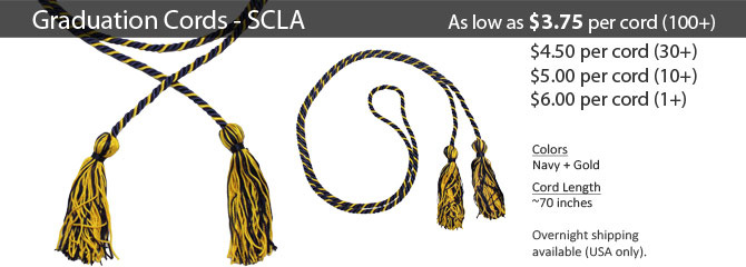 Members of The Society for Collegiate Leadership & Achievement will look their best on graduation day with honor cords in Navy Blue and Gold.
